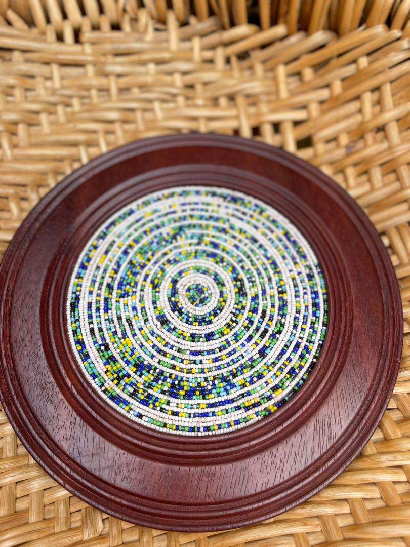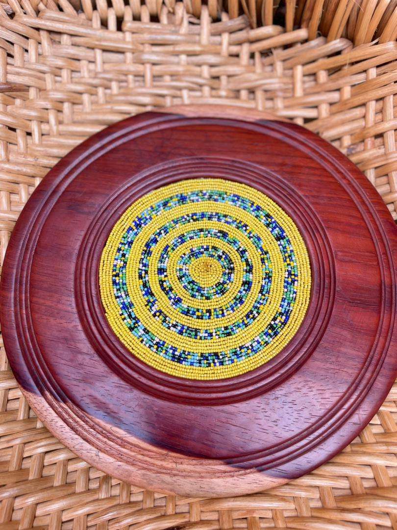Masque bamoun en bois décoré en laiton de perles plus cauris